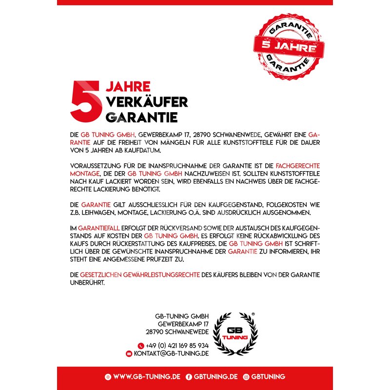 Garantie: insgesamt 5 Jahre GB Tuning GmbH Garantie (nähere Informationen siehe Galerie)